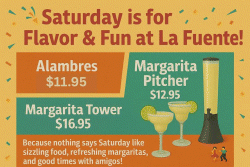 AT ALL 3 LA FUENTE MEXICAN RESTUARANTS IN FLORA, FAIRFIELD & MT VERNON!BOOK YOUR HOLIDAY PARTY NOW AT LA FUENTE!